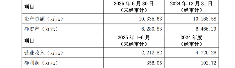 2024年,湖北永怡的营业收入为4720.26万元,净利润为-102.72万元;未经审计的数据显示,今年上半年,该公司录得营业收入2212.82万元,净利润持续亏损,为-356.05万元,同时,湖北永怡的净资产由2024年年末的6466.29万元降至6280.83万元。