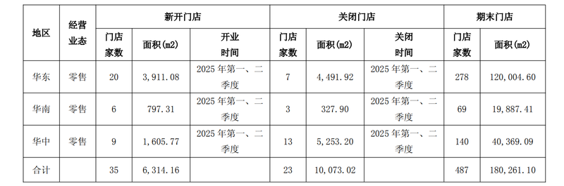 报告期内,爱婴室新开门店35家,关闭门店23家,截至报告期末,门店数量为487家。“线下渠道主要聚焦华东、华中、华南市场的直营门店拓展”,该公司表示,还携手万代南梦宫在全国范围内开设高达基地与万代拼装模型店。今年第三、四季度,爱婴室还有30家已签约待开业门店。