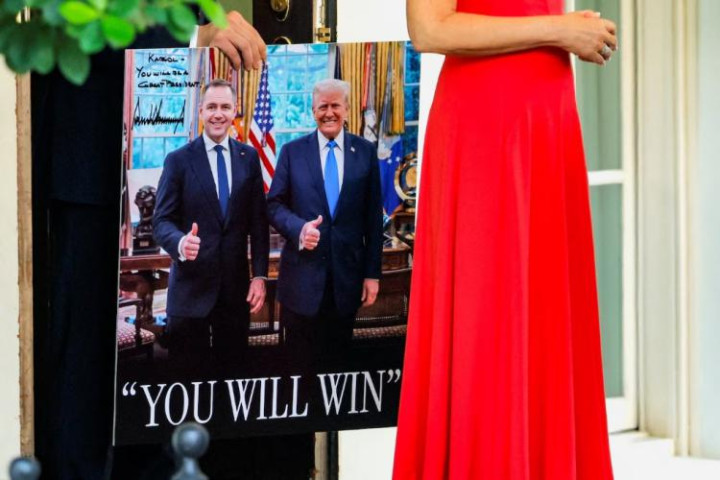 《野兽日报》称,最“引人注意”的礼物是一张巨幅打印的照片,照片上显示特朗普与纳夫罗茨基身处白宫椭圆形办公室,微笑并竖起大拇指,照片配文“你会赢”。特朗普还在上面签名留言,并为波兰访客准备了带有他签名的礼品袋。