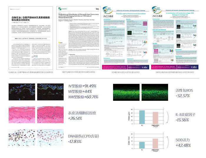 2024年,INGS英树自主研发独家的99.9%抗蓝光新成果「白梅花御光因™」 再度入选,并于IFSCC发表《探究白梅花御光因和嗜热菌的组合应用及其功效》、《白梅花御光因抗光老及抗蓝光研究》等学术论文,将实验与学术双重论证,有效紧致抗皱,显著提升皮肤对抗炎症、氧化与光损伤能力面向抗光老新纪元。