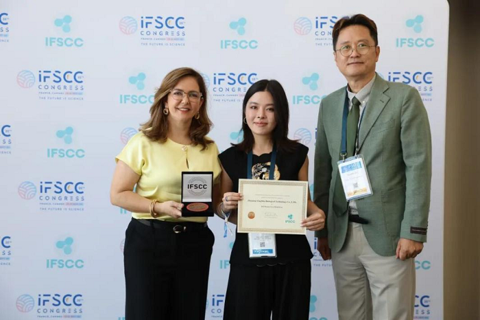 自2023年开始,INGS英树已连续3年在IFSCC大会上持续发表高质量科研成果,鉴于所带来作为中国品牌对推动全球化妆品科学的宝贵支持和贡献,现任IFSCC大会主席Prof.Vania Leite为INGS英树颁发特殊贡献奖章。